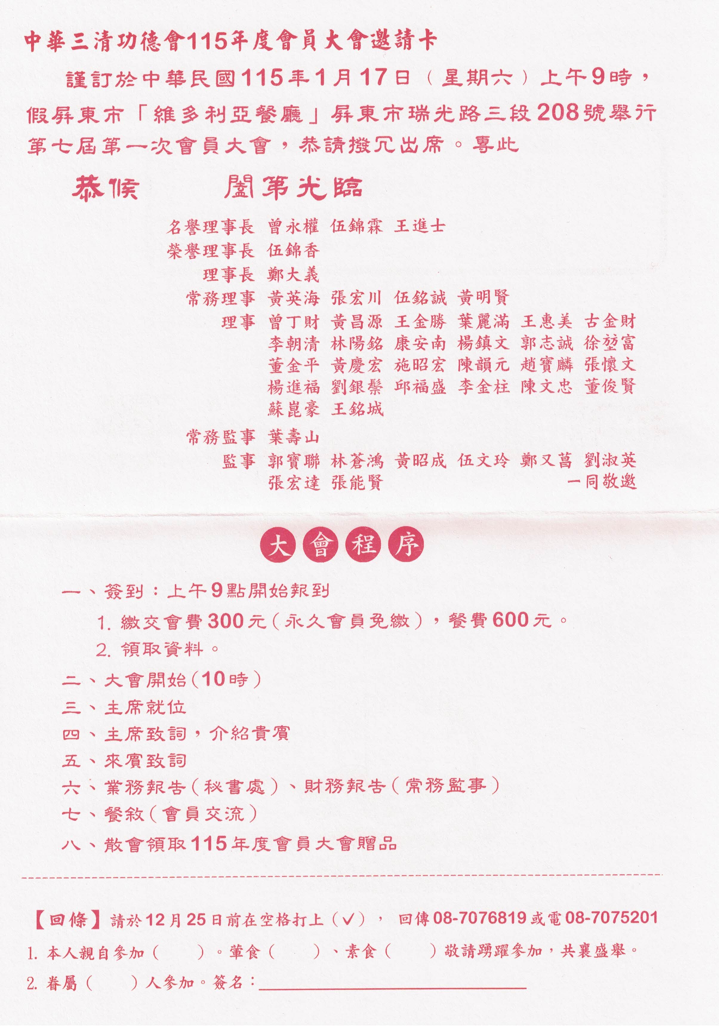 | [活 動] 115 年度會員大會將於115年1月17日舉行,歡迎三清家人 踴躍來參與 | |